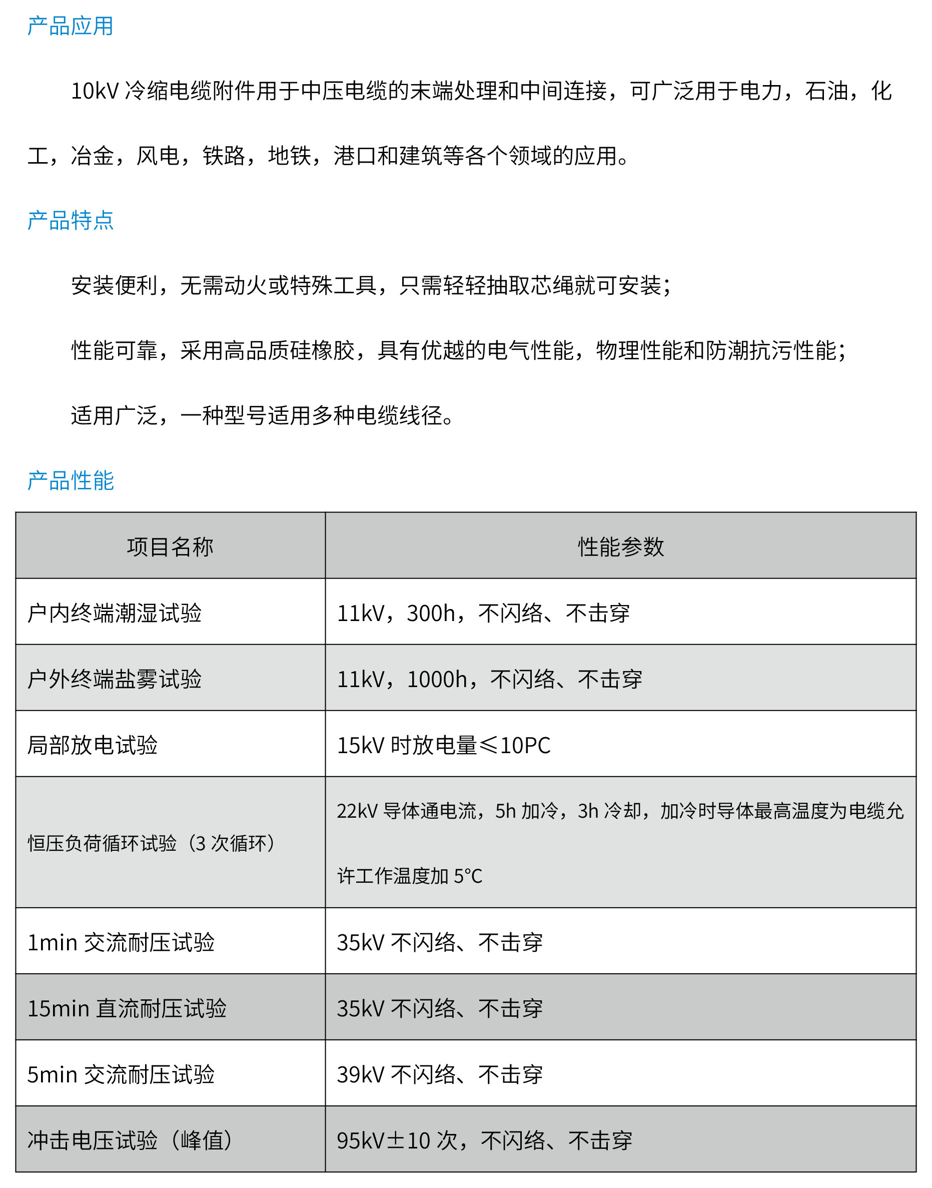 冷缩电缆附件系列