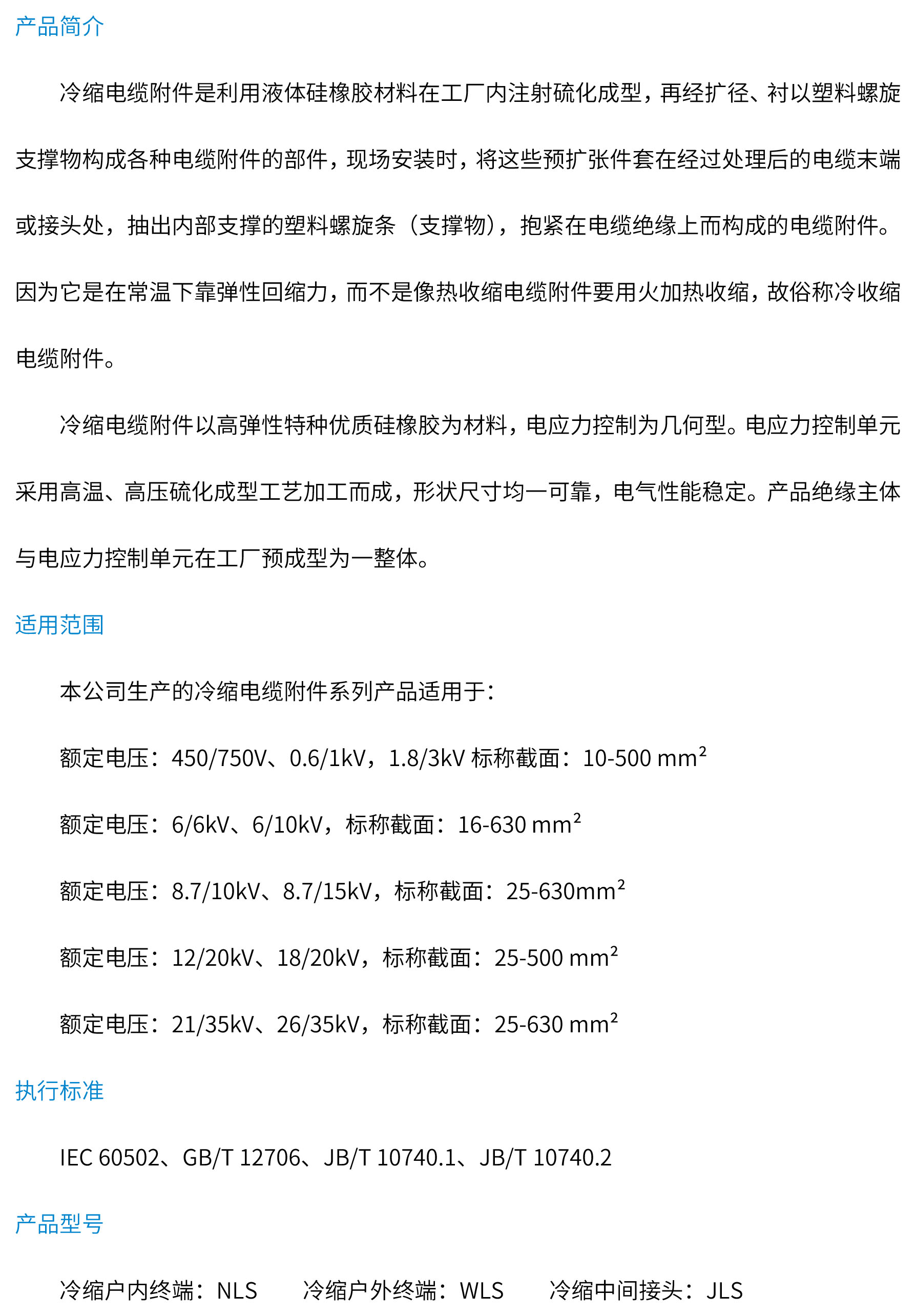 冷缩电缆附件系列